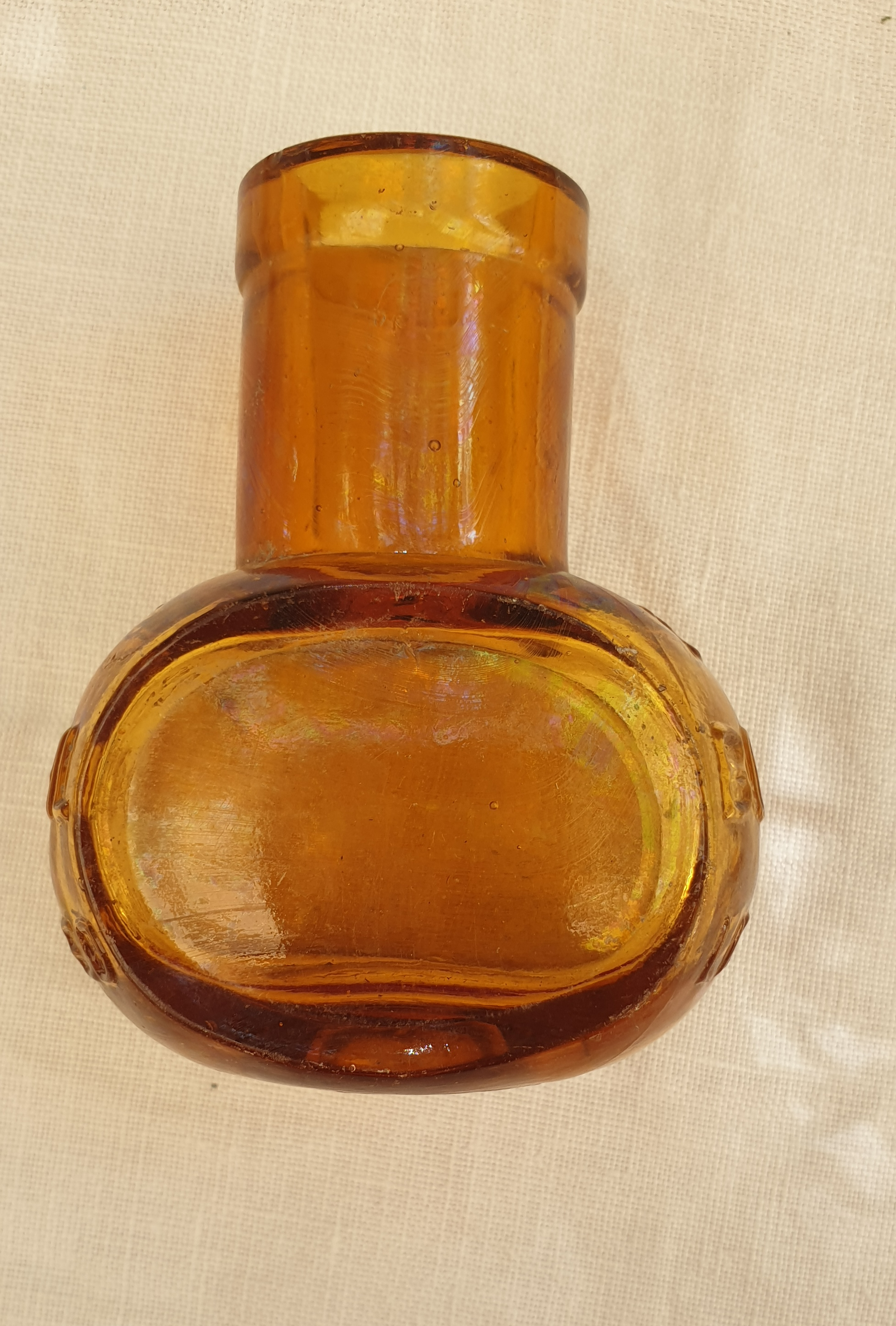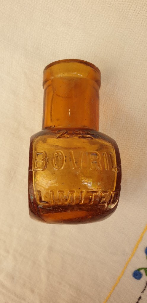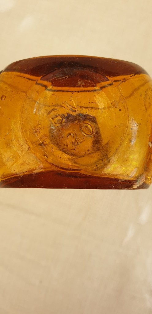 Maker: Forster’s Glass Co, UK for Bovril Limited 1908 – 1930 as has a hand tooled lip and not screw top. Small antique amber glass 2oz Bovril Limited bottle. Great piece with no chips or cracks. There is some surface wear and build up but as seen will be a great addition to your collection. BV 20 is embossed on base. These bottles contained a meat extract although that has long dissipated. Please look at the images carefully as they form part of the description. Materials: glass Size: 7cm wide x 7.5cm high Item code: 34-Sco-3p-Bovril bottle
