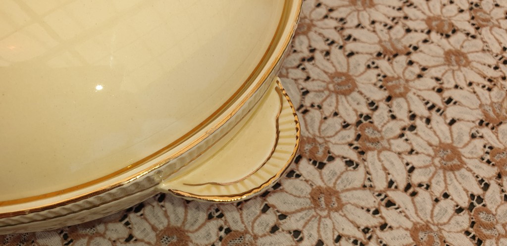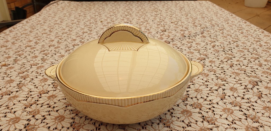 Clarice Cliff , Cream and Gold tureen with Half Crescent Handles