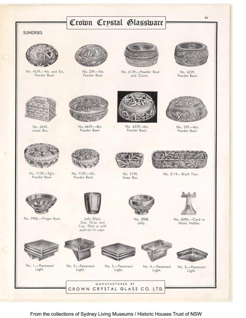 Maker: Crown Crystal Glass Co. Ltd., Australia A delightful pair of glass trinket bowls that form a clam with saw tooth edges. Listed in 1932 catalogue as No. 239, 5 inch Powder Bowl. Nibble on one of the saw teeth but does not affect closure. Please look at the images carefully as they form part of the description. Materials: Glass Size: 12.5cm wide, c. 8 cm high Item code: 73-arm-5-cwntrinket duo